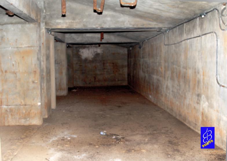 This picture is of the area behind the plotting room. The angled part in this room is believed to be the wall for the M.I. tunnel that goes out to the viewing bunker at the gun pad. The entrance to the tunnel would be on the other side of the right wall and the tunnel would go to gun 2.